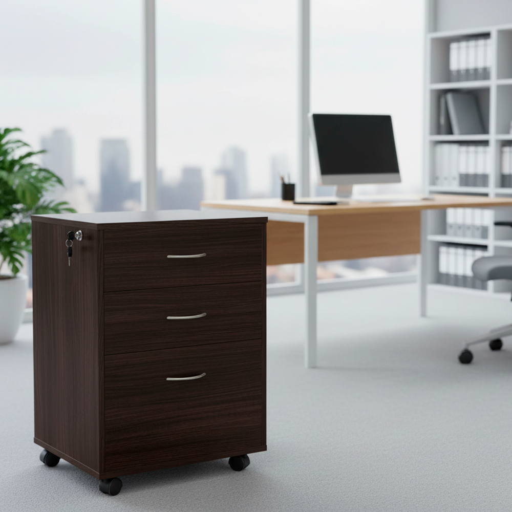 El modelo de Cajonera Móvil de dos cajones más kárdex ha sido diseñado para optimizar el almacenamiento en oficinas modernas, combinando funcionalidad, seguridad y estilo. Fabricado en melamina de 15 mm de espesor, su estructura robusta garantiza durabilidad, mientras que sus ruedas tipo sillón de 50 mm permiten una movilidad fluida y segura. Dispone de cerradura centralizada para mayor seguridad en todos los compartimentos y está equipado con tiradores metálicos satinados que aportan un toque elegante y contemporáneo. Ideal para organizar documentos y material de oficina de forma eficiente y profesional.