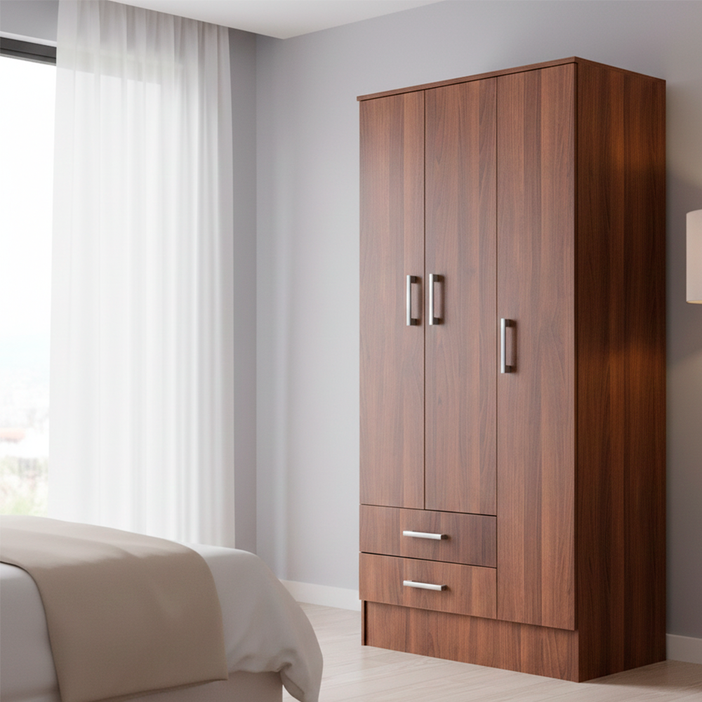 Incluye: 1 barra colgar ropa, 3 repisas, tiradores plásticos 128 mm, rieles corredera metálicos