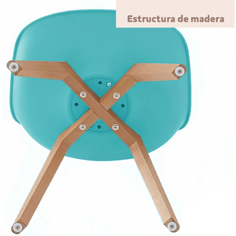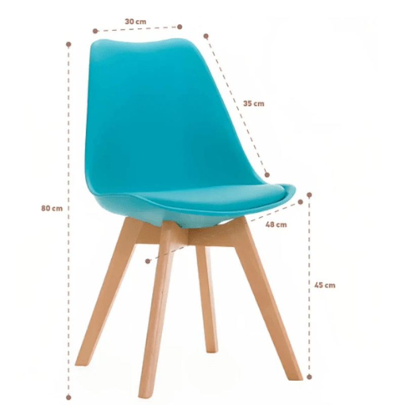 Características: Peso: 4,5 Kg Ancho de silla: 48 cm Alto de asiento: 45 cm Alto de espaldar: 82 cm Material: Polipropileno Cojín: Poliuretano Base: Haya Alemana
