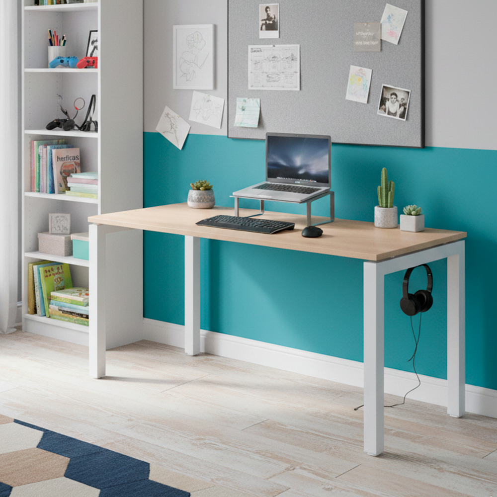Este escritorio combina una base metálica resistente con una cubierta en melamina de color Jerez, ofreciendo un diseño moderno y funcional. La cubierta de 24 mm con cantos en PVC proporciona durabilidad y un acabado estético, ideal para espacios de trabajo o estudio. La estructura en perfil de acero esmaltado al horno en color blanco, junto con travesaños en perfil tipo “C” y patines regulables en altura de polipropileno, garantizan estabilidad y adaptabilidad a diferentes superficies. Se entrega desarmado y embalado en caja de cartón, incluyendo todos los herrajes e instructivos necesarios para su armado, facilitando su transporte y montaje. Producto nacional, diseñado para ofrecer resistencia, practicidad y estilo en cualquier ambiente.