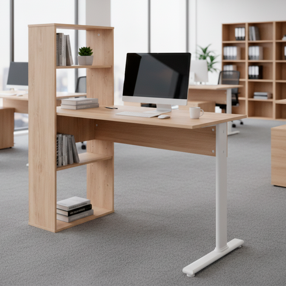 Mueble RTA con estante lateral, pata metálica pintada al horno.