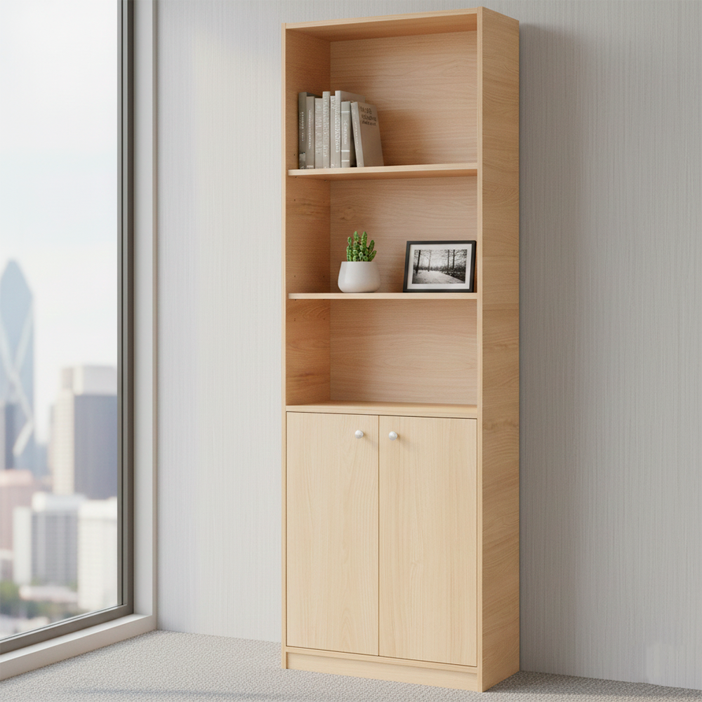 Este estante vertical de diseño contemporáneo ofrece una solución práctica y elegante para el almacenamiento en oficinas, hogares o instituciones. Fabricado en melamina de acabado mate y 15 mm de espesor, brinda resistencia estructural y una estética sobria que se adapta a diversos entornos. Consta de 4 repisas fijas que forman 5 espacios de almacenamiento abiertos, ideales para carpetas, libros o artículos decorativos. En la parte inferior, incorpora 2 puertas que permiten mantener objetos fuera de la vista, favoreciendo el orden. Su diseño nacional garantiza calidad, funcionalidad y disponibilidad local.