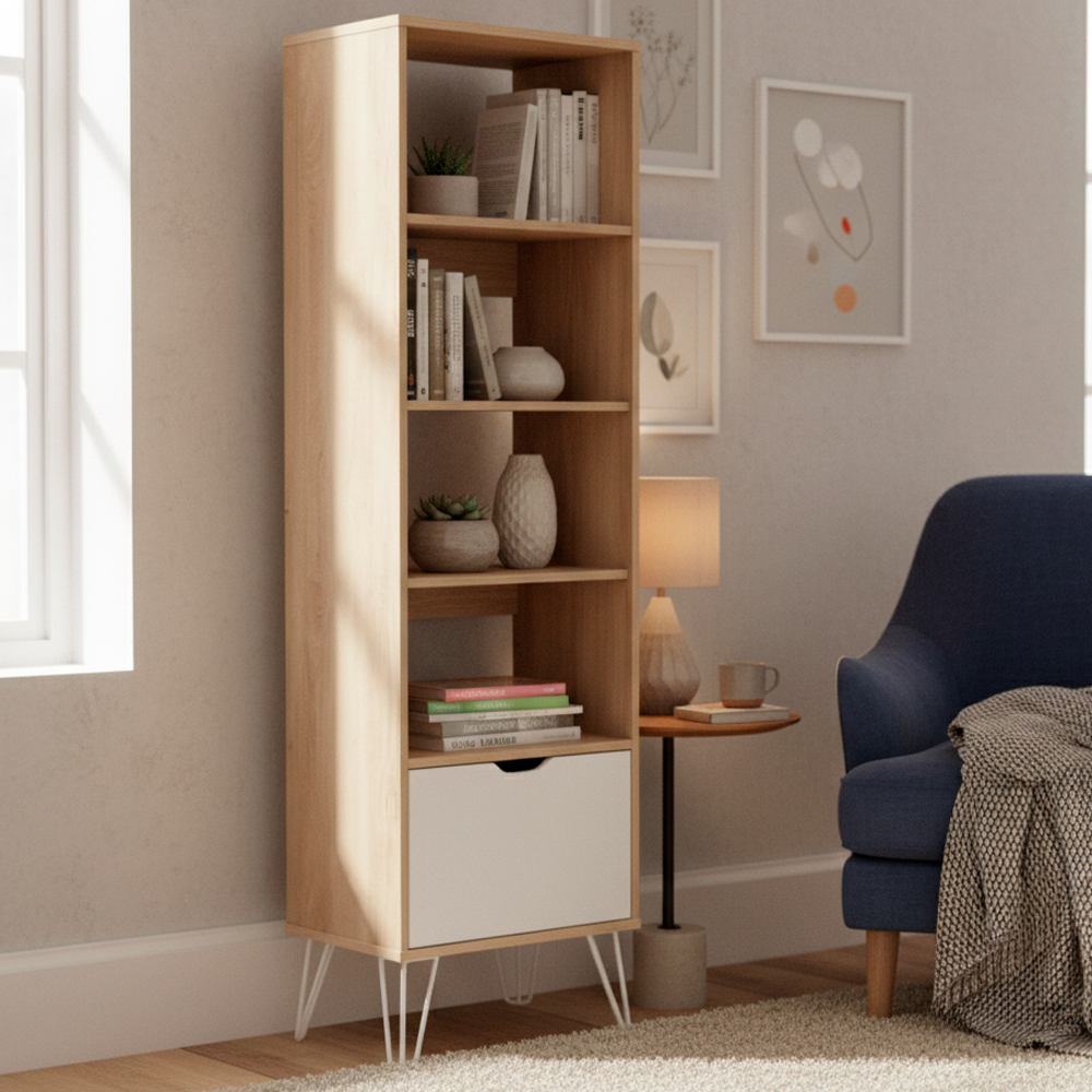 Muebles RTA en melamina, diseñado para crear espacios organizados y funcionales con un acabado limpio y moderno. Se entrega con sus herrajes y el instructivo de armado para montaje rápido y seguro. Estantes en melamina de 15 mm y base/cara superior en 18 mm ofrecen robustez y durabilidad. Incluye un cajón con correderas y repisas móviles para máxima adaptabilidad de almacenamiento. Patas de 200 mm de alto para estabilidad y mejor ergonomía. Sistema de unión mediante tarugos, Minifix, adhesivo y tornillos soberbios que garantiza una estructura sólida y duradera. Producto 100% nacional.