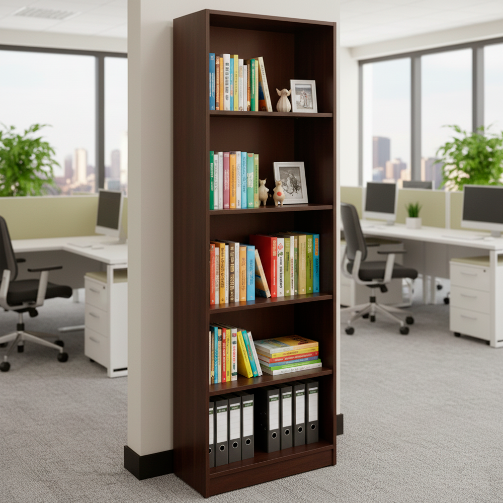 Este estante de diseño funcional y estilizado es una excelente solución de almacenamiento para oficinas, hogares o espacios educativos. Fabricado en melamina de 15 mm de espesor, ofrece resistencia y durabilidad para un uso prolongado. Dispone de 4 repisas divisorias que permiten una organización eficiente de libros, documentos o elementos decorativos. Su acabado en color Dakar brinda un toque cálido y moderno, integrándose fácilmente a diferentes estilos de mobiliario. Fabricación 100% nacional, garantizando calidad y soporte local.