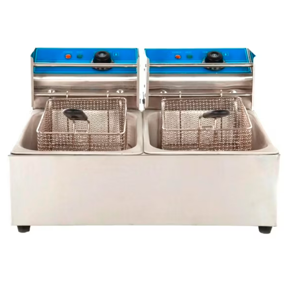 Freidora Eléctrica Profesional Doble Cuba (2 x 6 Litros) en Acero Inoxidable
