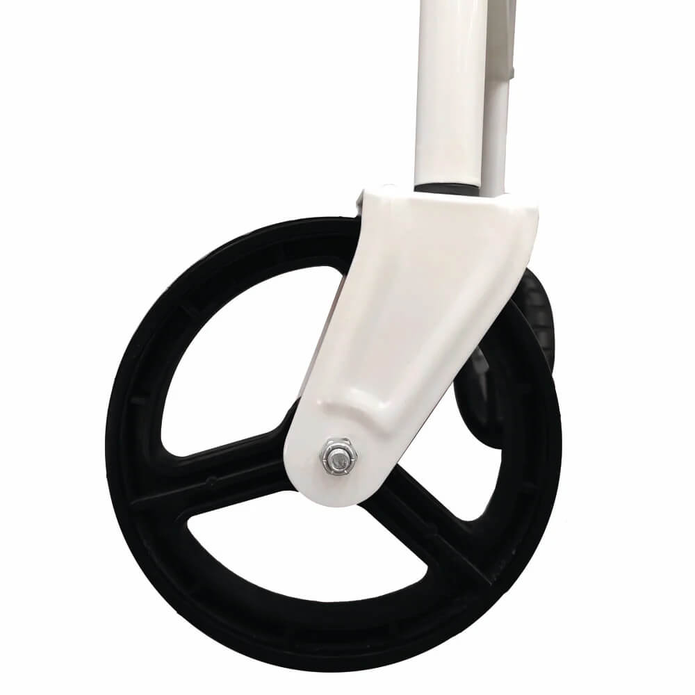 Mesa plegable con ruedas de polipropileno de 180 mm con horquillas de acero, que facilitan su traslado y almacenamiento