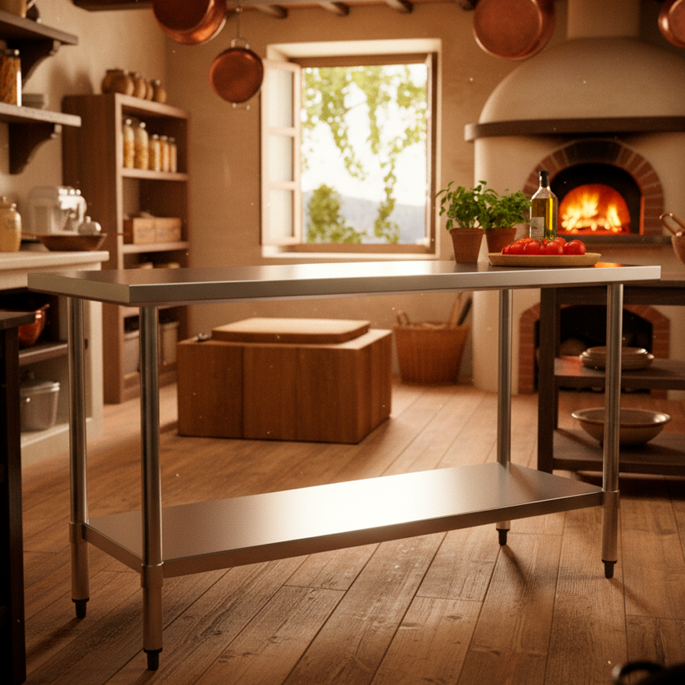 Mesón central de acero inoxidable
