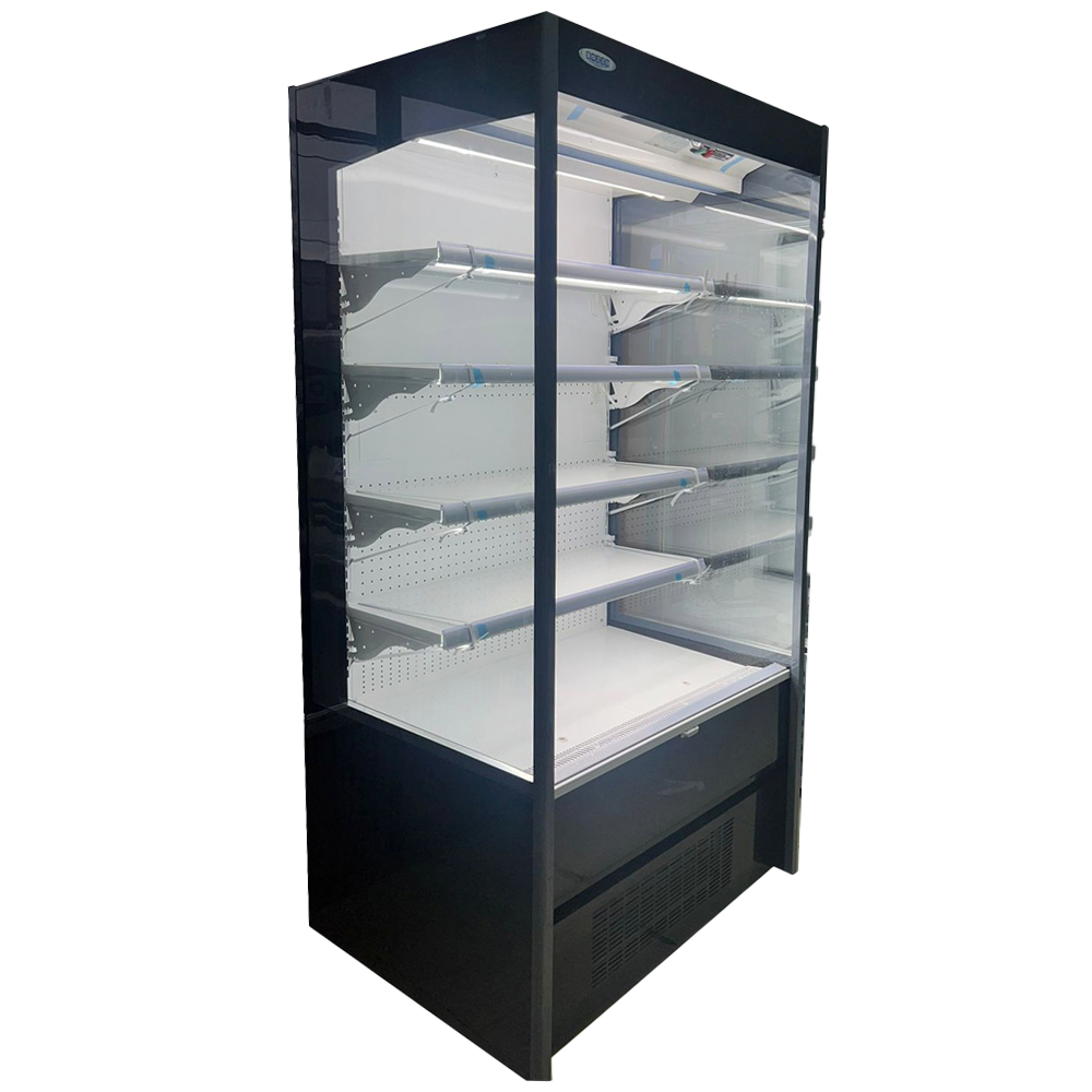Mural autoservicio 100 cm, 4 niveles de estantes, iluminación en visera, deshielo automático, 220v/50Hz, refrigerante R404A, control de temperatura.
