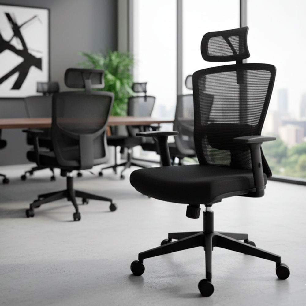 La silla ejecutiva THORNEZ ha sido diseñada para ofrecer una experiencia ergonómica superior en jornadas prolongadas de trabajo. Equipada con un cabecero regulable, apoyo lumbar acolchado y ajustable, y brazo 3D, esta silla garantiza confort personalizado para cada usuario. Su asiento con espuma moldeada de alta densidad proporciona un soporte firme y duradero, mientras que el mecanismo syncro con 4 posiciones de bloqueo permite una postura dinámica y saludable. Las ruedas de 60 mm para piso duro aseguran un desplazamiento suave y silencioso, ideal para oficinas modernas.