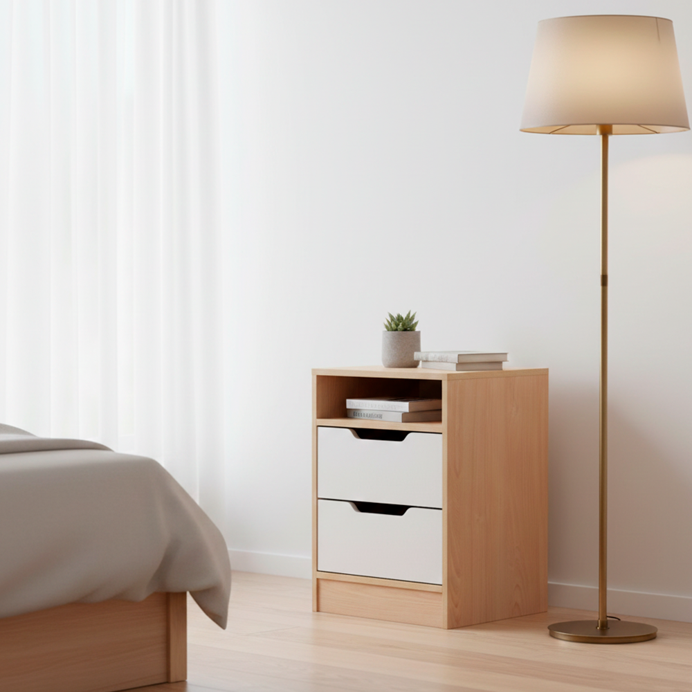 Velador Misuri 2 Cajones Carvalo/Blanco