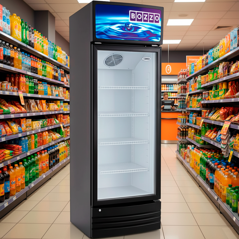 Visicooler R-14 400Lts, aire forzado, Puerta De Vidrio abatible, 4 parrillas ajustables, rangos de T° de 2°C a 8°C, Iluminancion interior